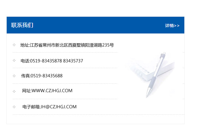 地址:常州市新北區友邦商務大廈1幢16、17層  電話:0519-85101652  傳真:0519-85112595  郵編:213022  網址:www_cz-jiayue_cn.fukai668.com  郵箱:xiajifengaa@163.com
